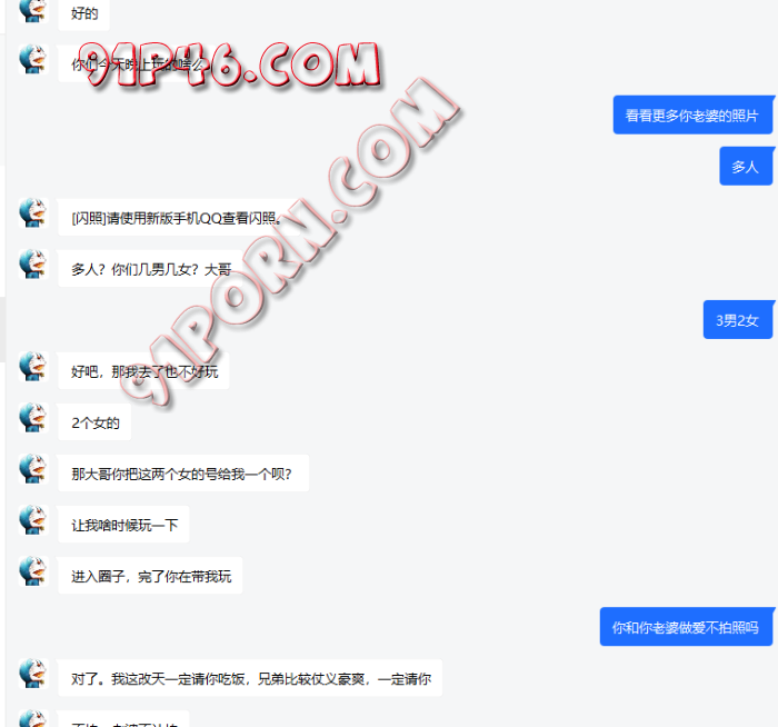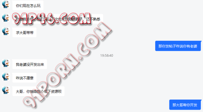 B搞死都不说到什么程度了,就只说一年都在说,妻子不同意,又说是农村的,最后竟然说老婆做爱的时他拍照都不同意【这都不同意,还想着人,4人????我不李姐】。【最后发现他说的都是骗局,刚开始没有结束对话是因为B老婆微胖极品,想多聊聊,能开发出来那肯定很nice】
